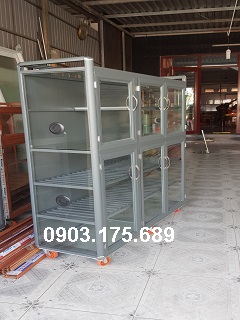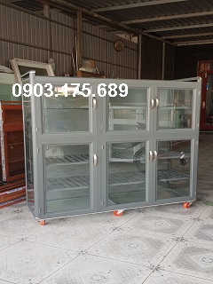 Tủ chén nhôm màu xám được thiết kế bằng khung nhôm xánh định hình làm trụ, hai mặt hông, phía trên, cửa sử dụng kính trắng. Đáy sử dụng kính bông. Mặt lưng là tấm Alu ( tấm hợp kim nhôm), hoặc Quý khách có thể sử dụng Inox, kính thủy tùy theo nhu cầu sử dụng.