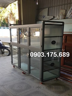 Tủ chén nhôm màu xám được thiết kế bằng khung nhôm xánh định hình làm trụ, hai mặt hông, phía trên, cửa sử dụng kính trắng. Đáy sử dụng kính bông. Mặt lưng là tấm Alu ( tấm hợp kim nhôm), hoặc Quý khách có thể sử dụng Inox, kính thủy tùy theo nhu cầu sử dụng.