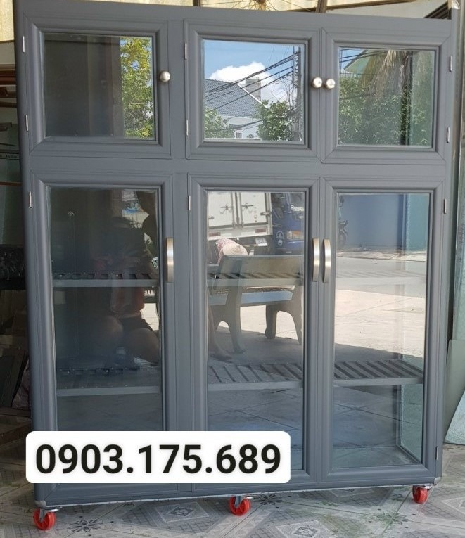 Tủ chén nhôm kính là lựa chọn được nhiều gia đình tin dùng nhờ độ bền cao, khả năng chống nước tuyệt đối và thiết kế hiện đại. Mẫu tủ chén nhôm kính màu xám có bánh xe dưới đây phù hợp cho nhà phố, căn hộ, quán ăn, giúp không gian bếp gọn gàng và sang trọng hơn.