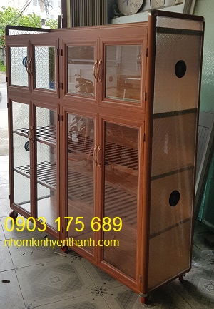 Mẫu tủ chén nhôm kính màu vân gỗ